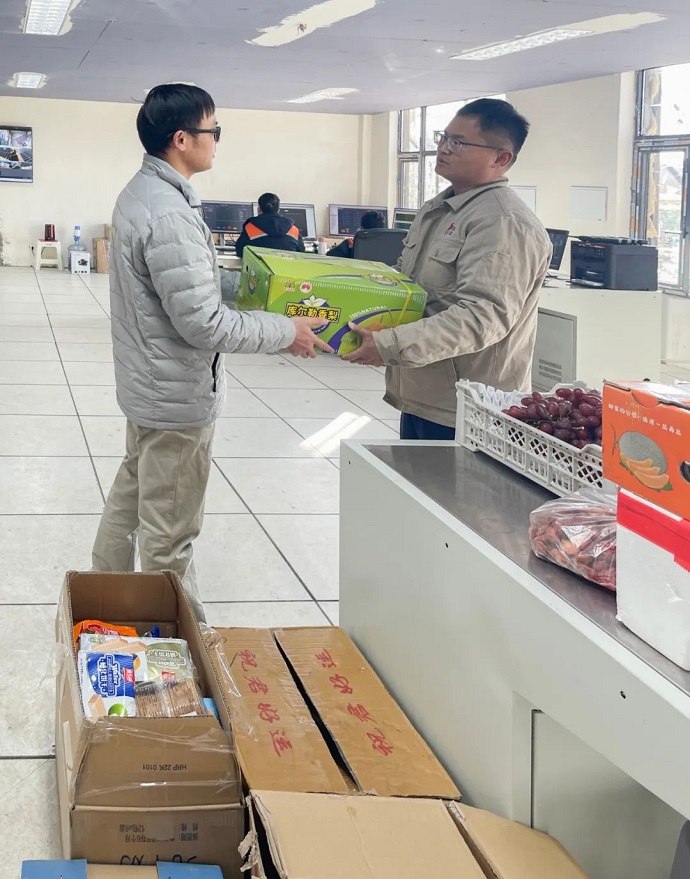 在2023年新春佳節(jié)來(lái)臨之際,金河水電公司工會(huì)到吉昌光伏及瓦托水電廠看望慰問(wèn)新春佳節(jié)仍堅(jiān)持奮戰(zhàn)在生產(chǎn)一線的干部職工,并送上新春祝福與慰問(wèn)品。