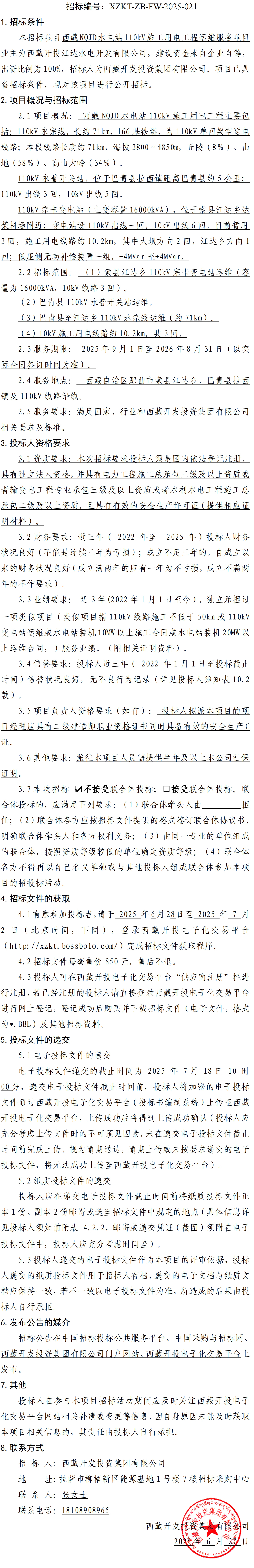 西藏NQJD水電站110kV施工用電工程運(yùn)維服務(wù)招標(biāo)公告