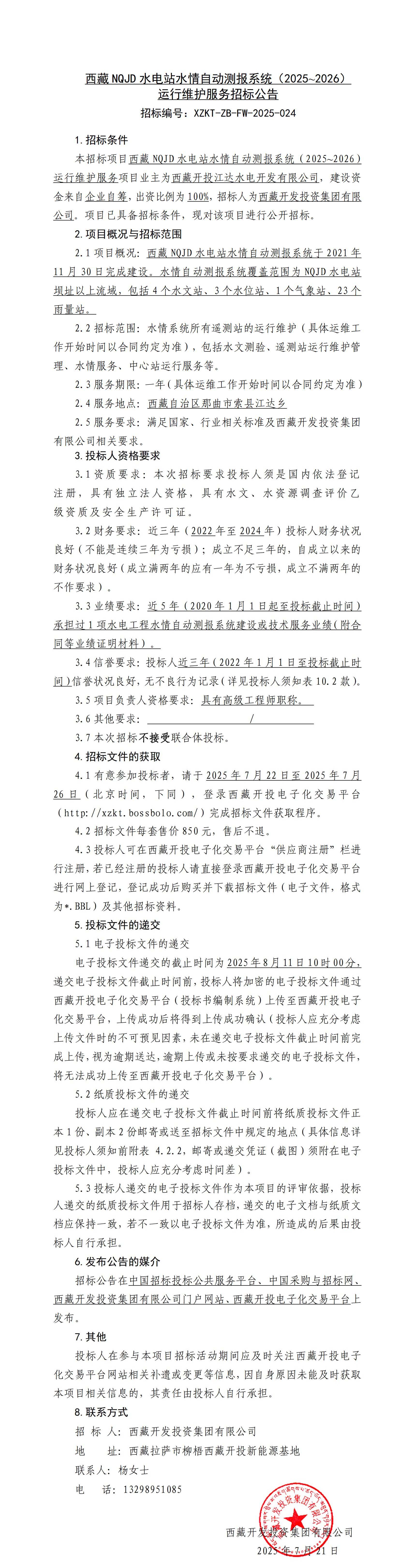 西藏NQJD水電站水情自動測報系統(tǒng)(2025~2026)運(yùn)行維護(hù)服務(wù)招標(biāo)公告